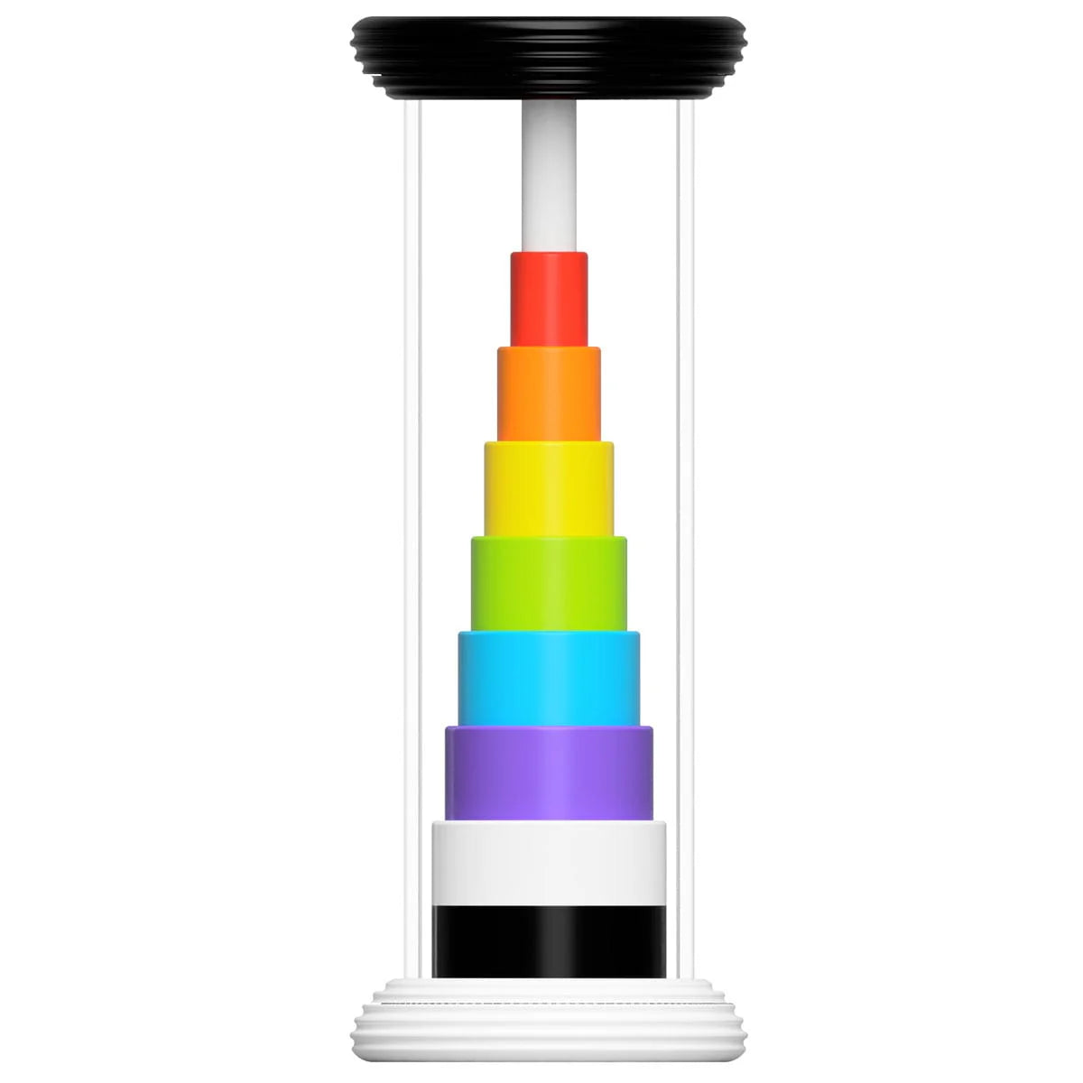 Flip it one way and the rings form a black-and-white stack. Flip it the other way, and it magically transforms into a rainbow!