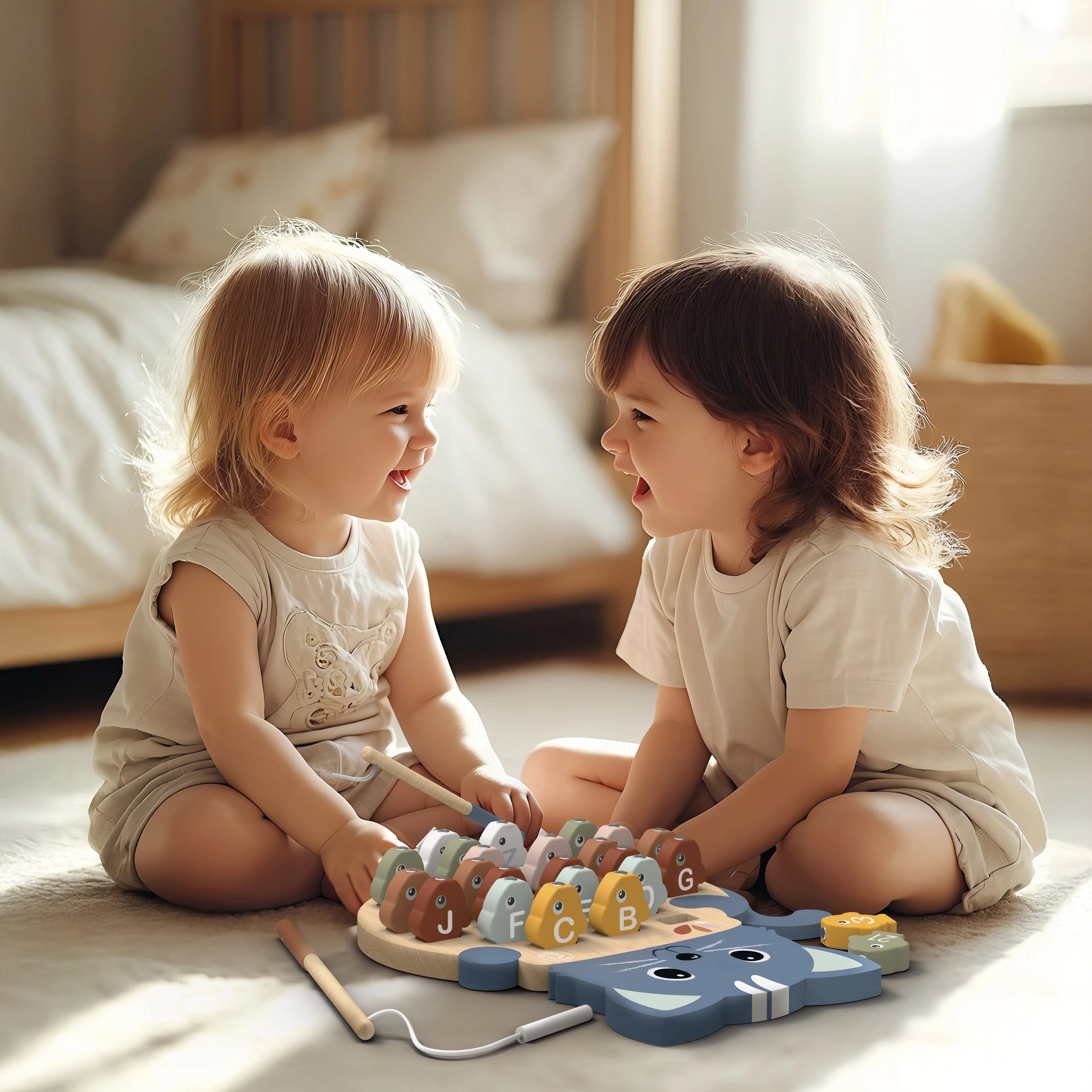 The Fishing Game Alphabet combines fun and education in one charming, interactive set. Reel in the fun with the Fishing Game Alphabet! This colorful and educational toy is designed to help toddlers learn the alphabet while developing essential fine motor and coordination skills. With 26 lettered fish and 2 magnetic fishing rods, kids can take turns "catching" letters, making it a perfect activity for solo or cooperative play.