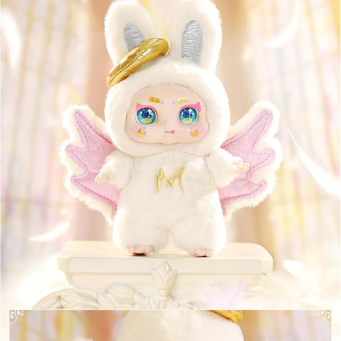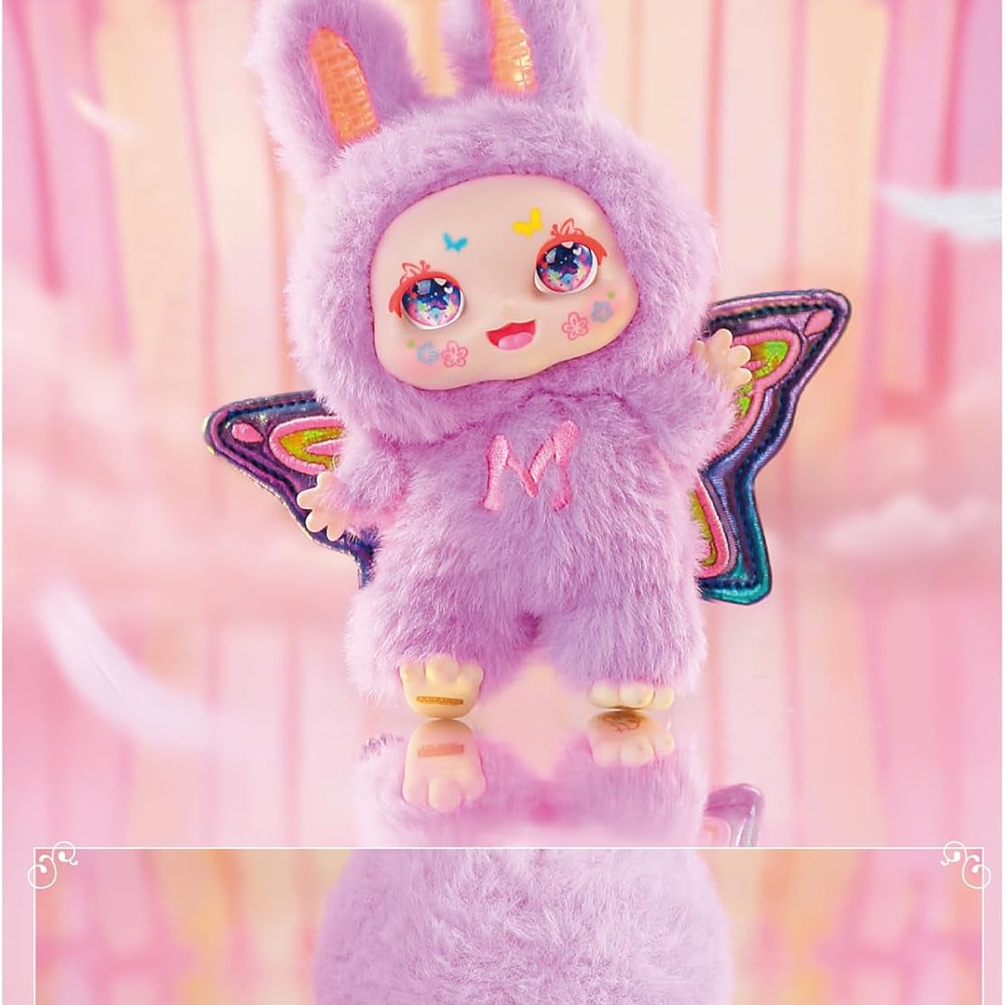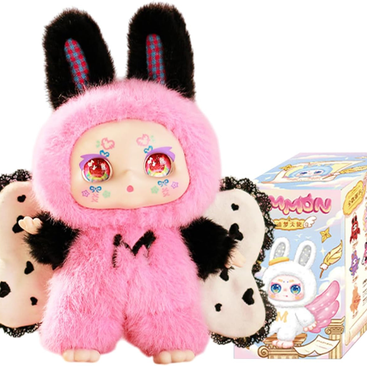 Kimmon blind box dolls are collectible, 6–7 inch plush dolls that come in a mystery box, meaning you don't know which character you will receive until you open it. These dolls are known for their high-quality materials, whimsical designs, oversized eyes, and detailed costumes. Each doll is also a collectible with features like a unique ID card and accessories, such as a metal fashion ring.