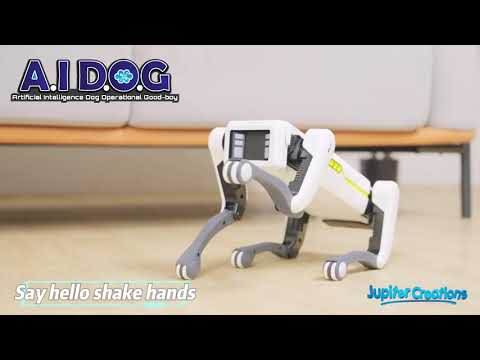 A.I. D.O.G. is a state of the art pet of the future. It comes equipped with a full function 2.4G remote control system with commands like sit, push ups, kung fu, and even relieve itself. A.I DOG has motion sensors, and a screen with adorable reactions and expressions.