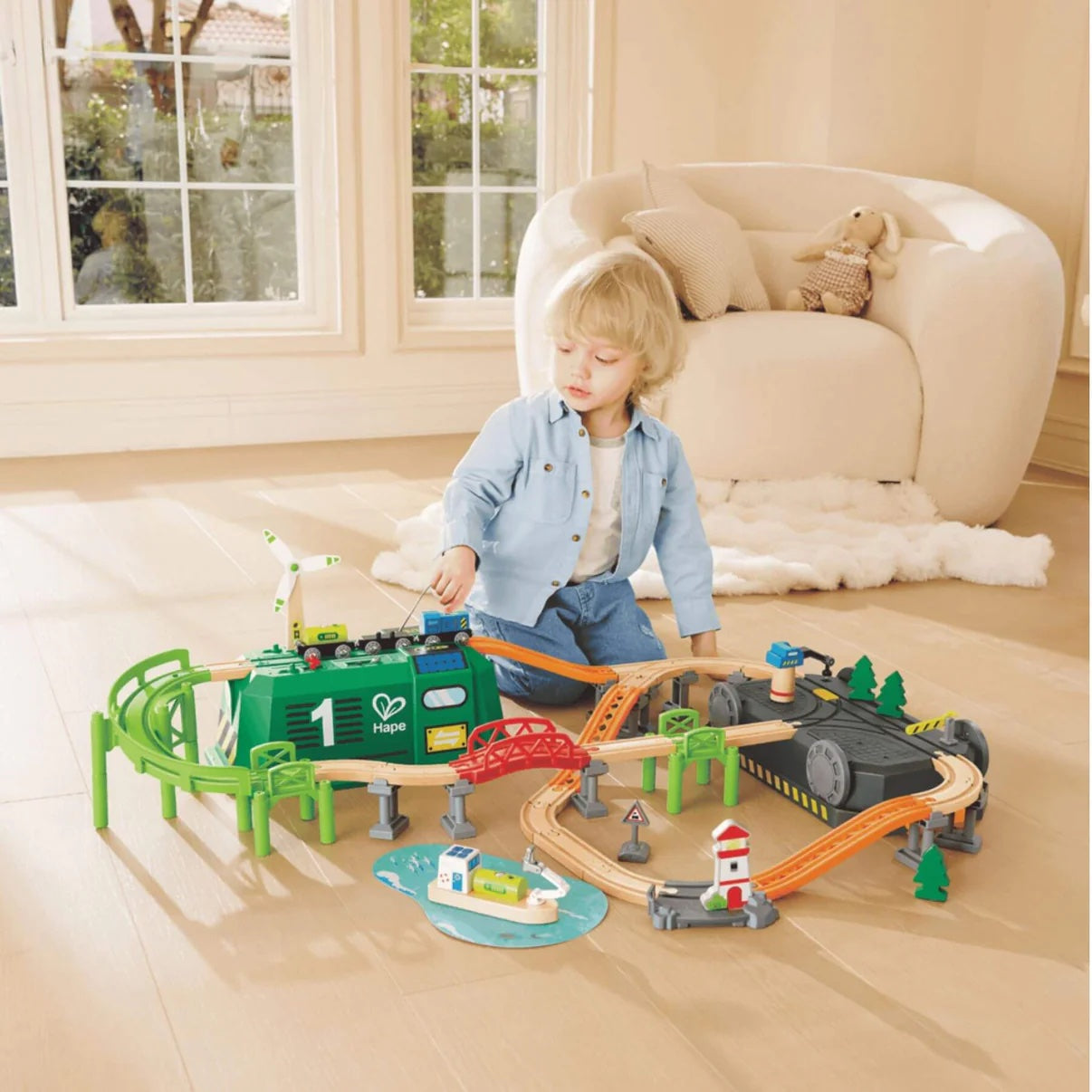 Unbox endless adventures with the Hape Eco Energy Train Bucket Set, where hands-on play meets sustainability. With solar charging stations, wind-powered accessories, and a train-shaped storage box that doubles as part of the play scene, kids can build, learn, and explore all in one go. Perfect for introducing renewable energy concepts in a way that’s exciting and interactive!