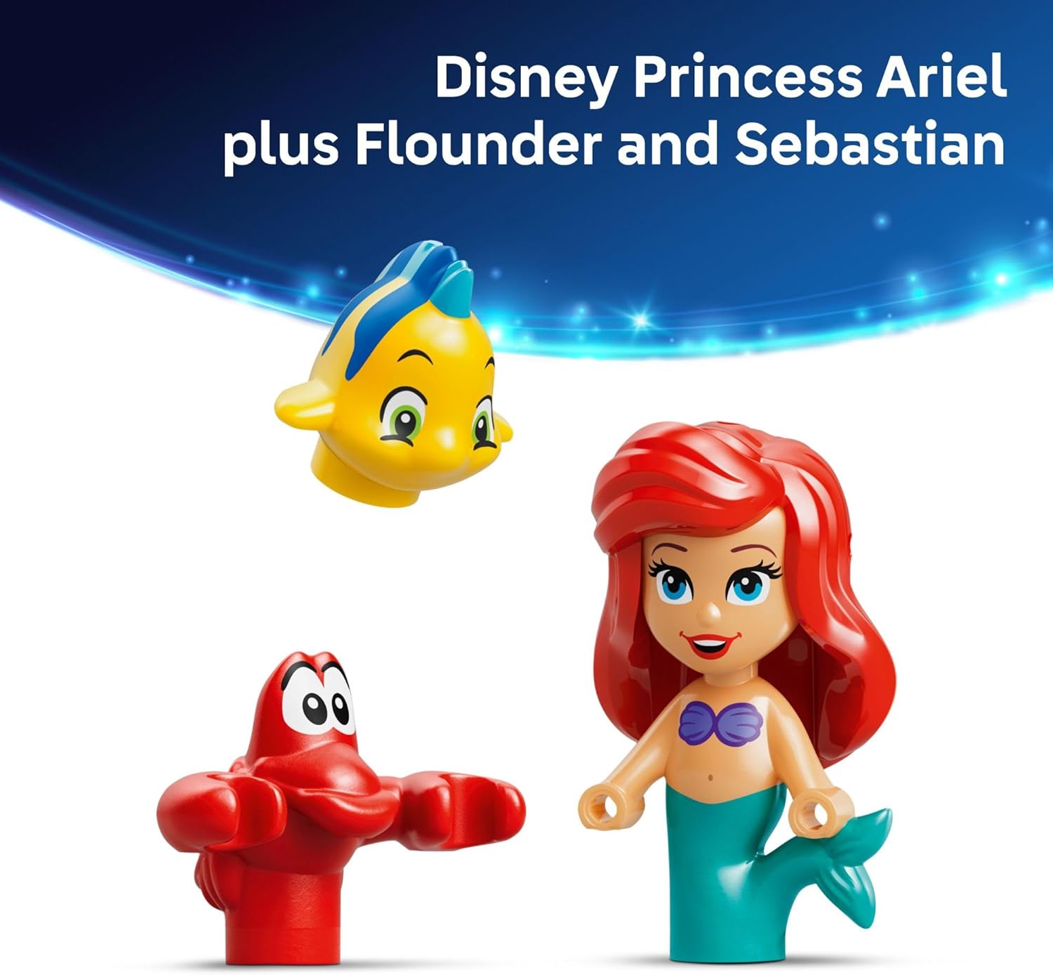 Dive into a miniature underwater world with the LEGO Disney Princess Ariel's Magical Mini Palace (43285) building toy for girls and boys ages 5 years old and up. This Little Mermaid playset includes 3 Disney characters, Ariel, Flounder and Sebastian, plus a lockable mini palace and grotto, a small boat, a dolphin carriage, and fun accessories designed to spark storytelling and imaginative play. Builders can unlock the palace with the included key to reveal opening doors on each side, attach the dolphin to the carriage, and explore the treasure chest with fork and crystal accessories. This portable castle toy is perfect for on-the-go play and display. Makes a fun birthday present or anytime treat for young Disney fans who love Ariel and The Little Mermaid. LEGO Disney building toys bring beloved characters to life with authentic details and creative building experiences. Kids can enjoy intuitive building with the LEGO Builder app, zooming and rotating with 3D instructions, while saving and tracking progress.